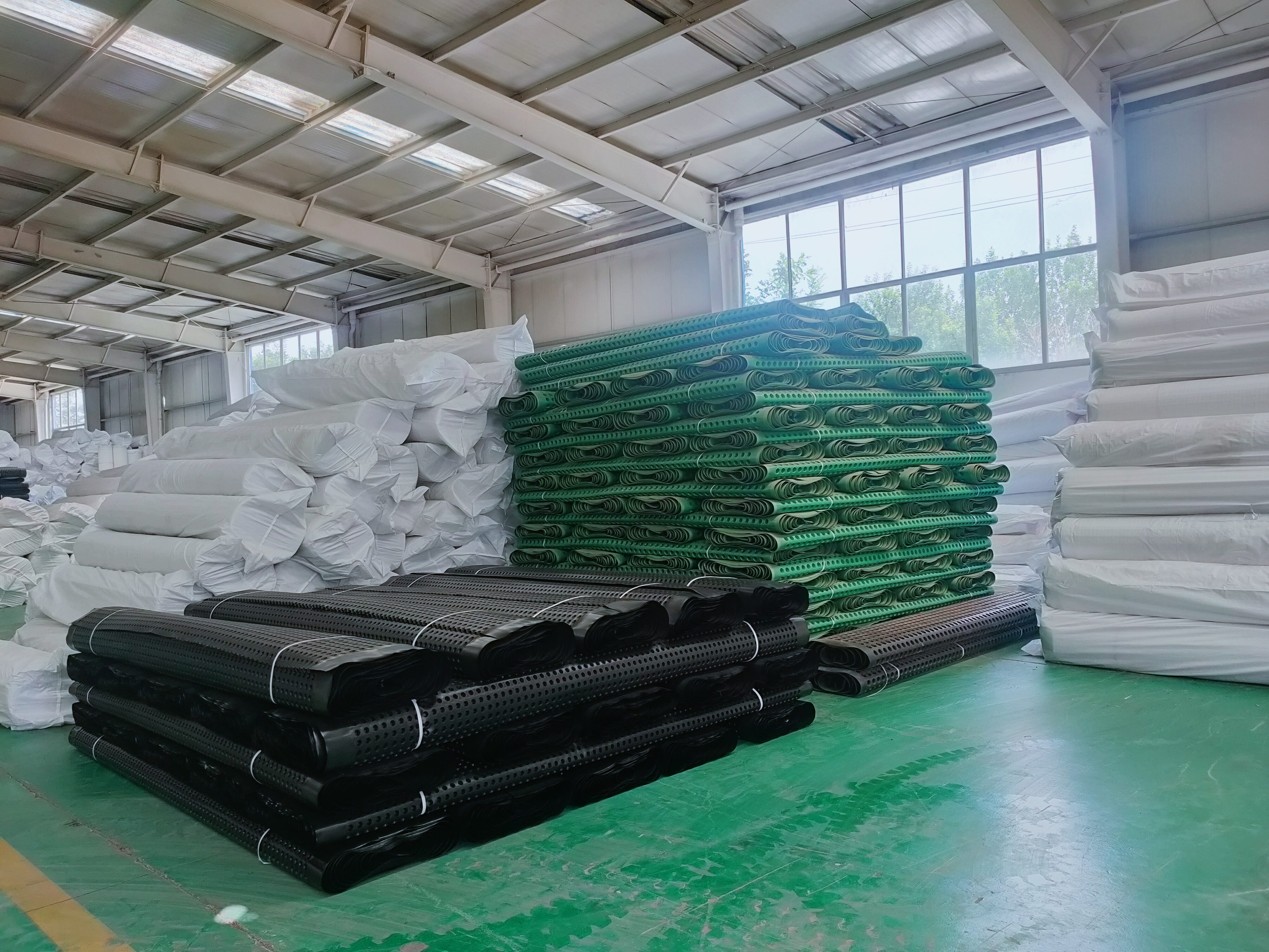 山东省金业土工材料有限公司是生产土工合成材料的大型综合性企业,公司集产品的研究、开发、设计、制造于一体,技术力量雄厚,产品种类齐全。 公司主要生产生态袋、土工布、土工膜、复合土工膜、排水板、蓄排水板、复合排水板、软式透水管、植草格、塑料盲沟、膨润土防水毯等系列土工材料。